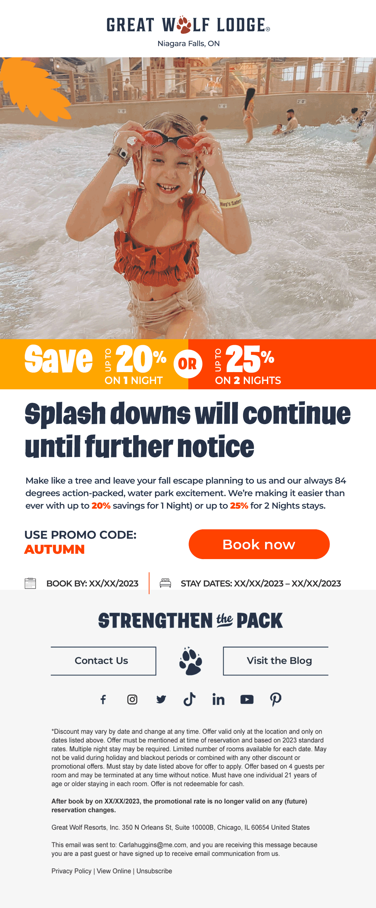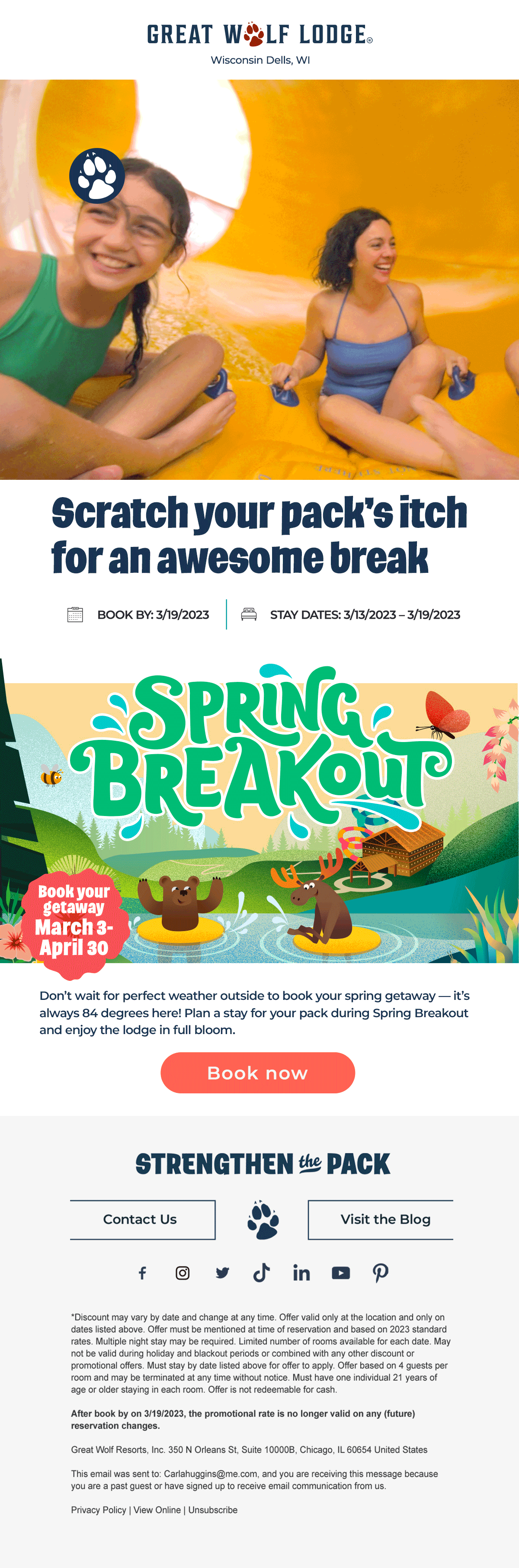 Over 5+ years of delivering unique ways to speak to family oriented, water park resort fun can be a challenge but thinking thru the possibilities is what brings me joy. In the process we developed a winning template look for the regular promos that helped build the brand into a growing success going from 16 to 22 Lodge locations nationally.